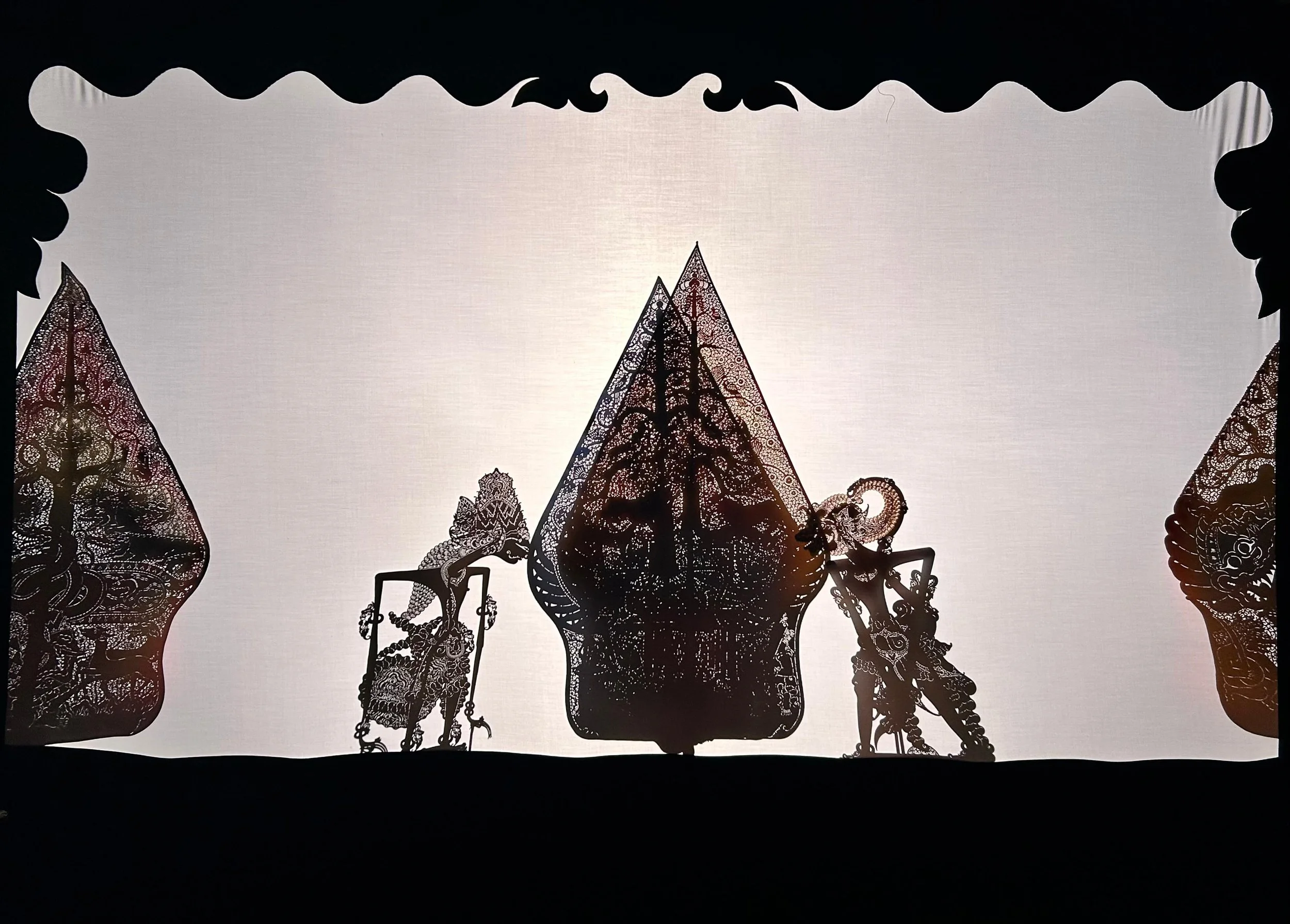 Développé à Java, les marionnettes de wayang kulit sont confectionnées en cuir de buffle finement ciselé et peint, et maintenues par une tige de corne, de bois ou de bambou. Manipulées par un musicien-narrateur-conteur (dhalang) derrière un écran de toile (kelir) éclairé par une lampe, elles évoluent au son d’un gamelan placé derrière le dhalang.